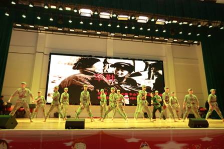 汇演由音乐舞蹈学院院长谢坚强作曲,周邦春副书记指挥的民族管弦乐合奏《花好月圆》、《潇湘乐》拉开了帷幕,音乐时而轻柔,绵长悠远,时而激昂,气势宏伟,在场的观众无一不为之感染。紧接着,群舞《军鞋》,使观众们深刻体会到抗战时期战士们的艰辛,为抗战胜利的坚定信念和无法忽略的博大母爱。
