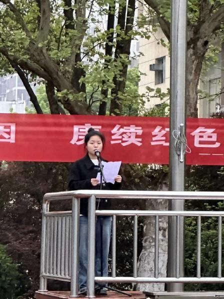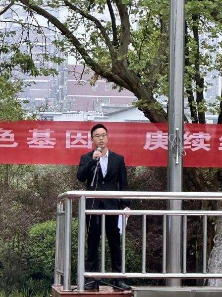 升旗仪式开始,英姿飒爽的国旗护卫队队员们护送着鲜艳的五星红旗进场,五星红旗伴随着庄严的《中华人民共和国国歌》冉冉升起,迎风飘扬,在场师生们庄严肃立,向国旗行注目礼,深怀对祖国的无限热爱和崇高敬意。随后,学生代表熊璐走上前台,以铿锵有力的声音发表了以“传承红色基因,赓续红色血脉”为主题的演讲,她深情地回顾了革命先烈的英勇事迹,强调了在新时代发扬雷锋精神的重要性,她的话语激励着在场的每一位师生,让大家更加坚定了继承和发扬红色传统的信念。最后,唐太文老师发表了以“立志报国,明德修身”为主题的演讲,他深情地回顾了自己多年来的教育生涯,分享了自己的教育理念和人生感悟,他强调立志是成才的基石,明德是立身的根本,修身是成就事业的关键,希望同学们能够树立正确的世界观、人生观和价值观,以实际行动践行报国之志,以高尚的品德和良好的修养赢得社会的尊重和认可。演讲结束后,学生代表马瑞阳代表全体师生向唐太文老师送上了鲜花,表达了对唐老师多年付出的感激之情和未来工作的美好祝愿。