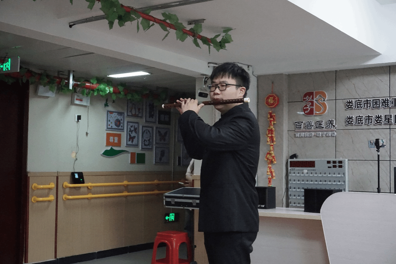我院党员志愿者用精彩的《技巧组合》拉开了活动的序幕,随后华美风雅的古典舞《纸扇书生》、《一条大河》,悠扬悦耳的竹笛《牧民新歌》、吉他弹奏《稻香》、感人至深的红歌《把一切献给党》一一登场,赢得了大家经久不息的掌声。