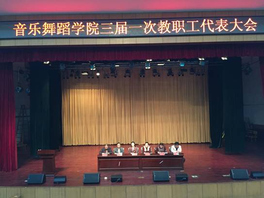 校工会常务主席刘文红向大会的召开表示祝贺,她充分肯定了音乐舞蹈学院在2016年取得的成绩,希望各位代表以高度的主人翁精神,把这次大会开成一次民主和谐、团结奋进的大会。