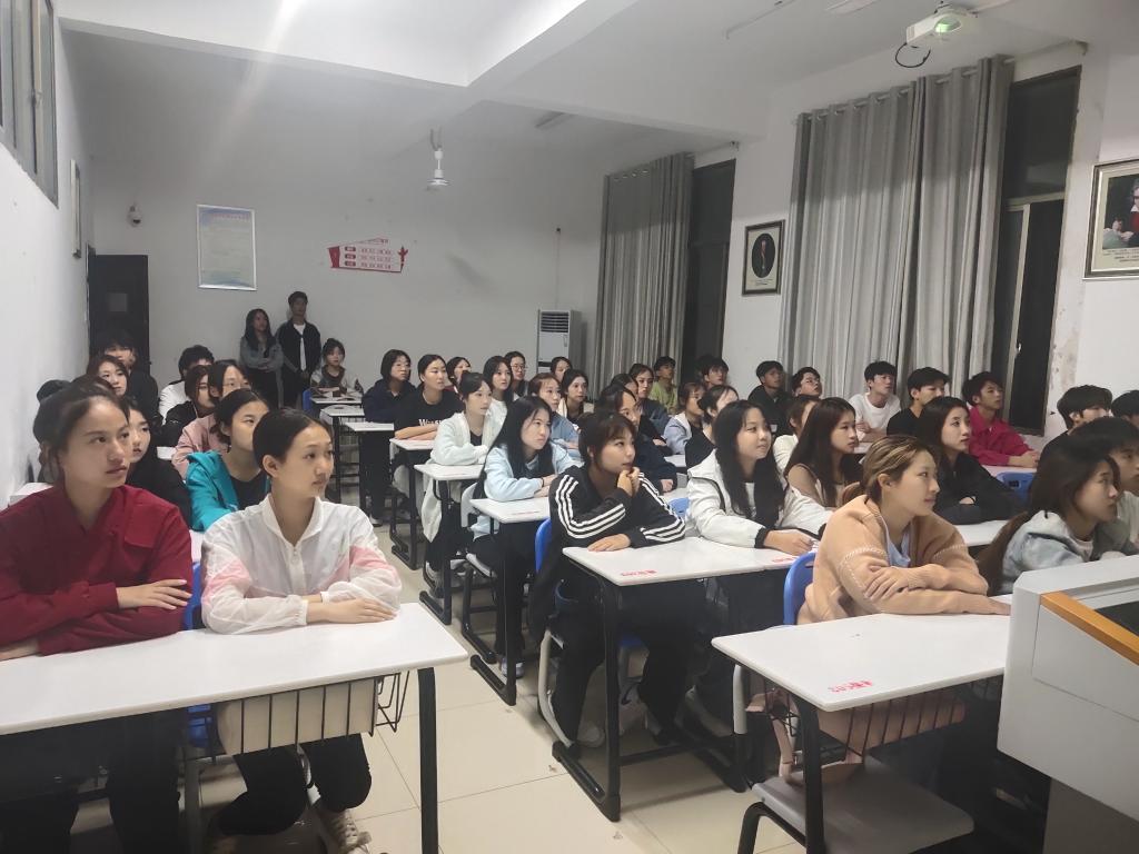 2023年10月11日晚7:30,音乐舞蹈学院2023级新生在逸夫楼展开“从阅己、悦己、越己,到成为更好的自己”主题团课。