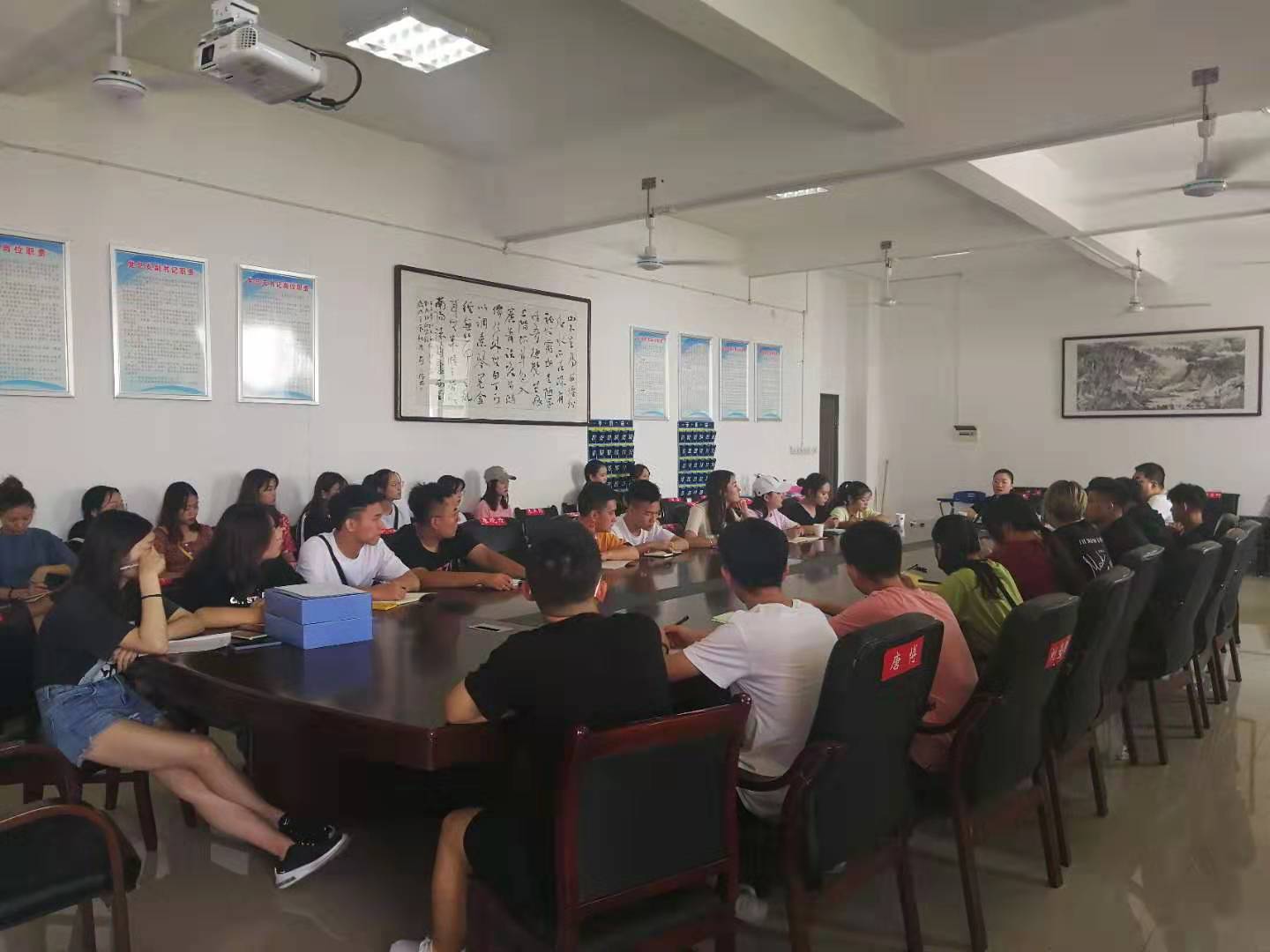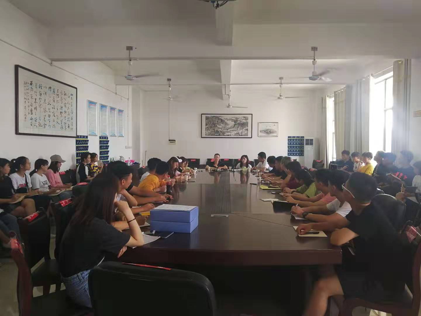 为了能够让新生入校报道时安全、顺利的完成新生报道注册工作,ballbet贝博bb艾弗森音乐舞蹈学院于2019年9月5日下午3点在逸夫楼会议室由党总支副书记邓莉立和19级辅导员何洁主持召开迎新工作会议,实习辅导员李彦浩和覃健雅及迎新工作人员等42人参加会议。