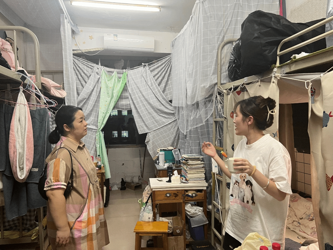 走访期间,老师们仔细排查了宿舍用电和消防安全隐患,与未离校的同学展开亲切交流,将安全教育、安全提示、安全常识、安全意识传递给学生,让学生将“安全”二字摆在学习生活的首要位置并牢记心间的同时,嘱咐同学们注意暑期的安全问题,悉心提醒防诈、实习就业、社会实践、饮食、交通出行、心理健康等方面内容。他们亲切地与同学们交谈,耐心倾听大家在学习压力下的烦恼,在生活琐事中的困扰。那一句句饱含深情的问候,那一个个切实可行的建议,如同一股股暖流,缓缓流淌在同学们的心间,驱散了心中的严寒。