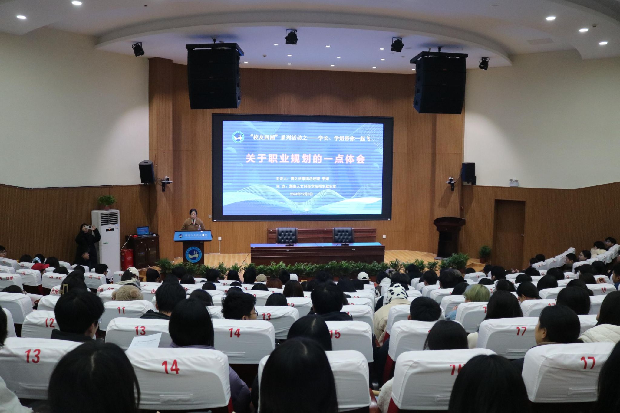 12月8日晚,贝博在匠成楼报告厅举行了大学生职业生涯规划分享会。贝博2004级外国语学院经贸英语专业优秀校友、青之伙集团总经理李娟女士受邀返校,为学弟学妹们做关于职业规划的主题分享。招生就业处处长刘红燃、轩路国际咨询公司总经理李小科女士、长沙校友会秘书长彭扬女士出席活动,各二级学院近300名学生代表参加。活动由招生就业处副处长陈佩君主持。