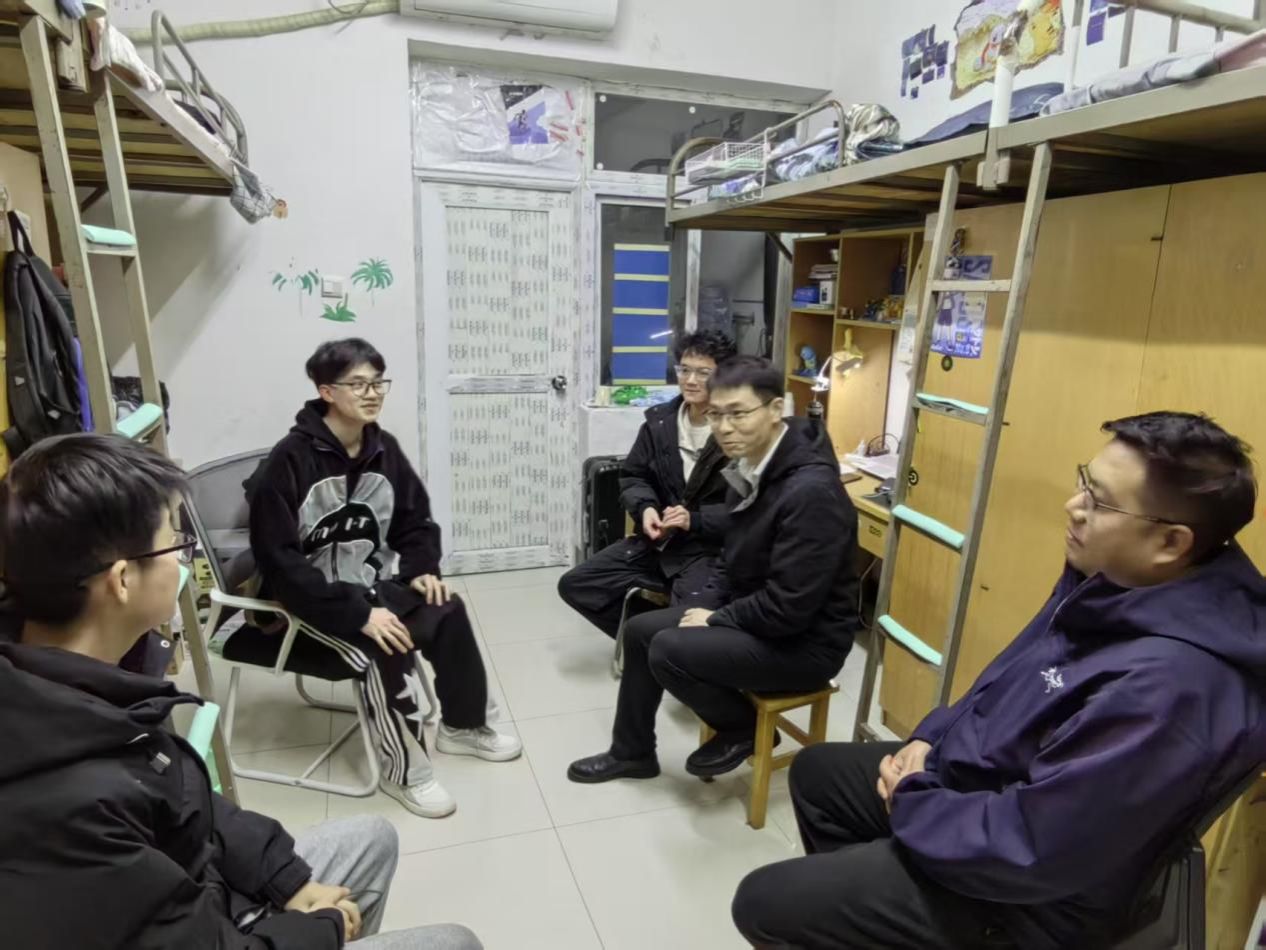 谭峰亮一行先后走访了8栋、13栋、14栋、阳光公寓4栋阳光公寓5栋等学生宿舍,与学生交流学习生活情况、就业创业、未来发展规划以及遇到的困难和问题并认真听取了学生对学校工作的意见和建议。