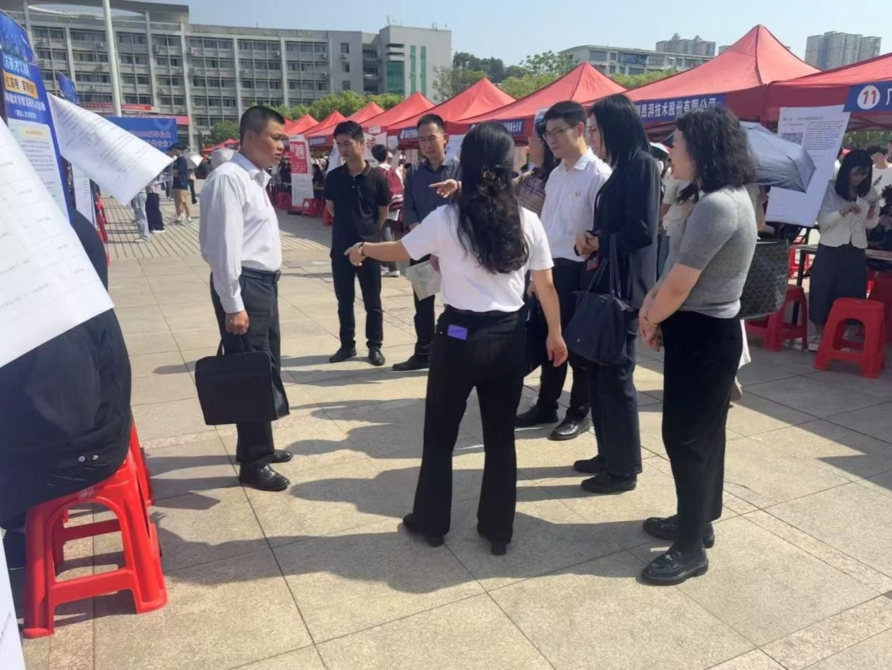 本次招聘会聚焦材料科学与工程、电子信息、汉语言文学、行政管理等学科领域,提供岗位500余个,覆盖技术研发、智能制造、信息技术应用、教育培训、文化创意等多个行业方向。吸引了600余名学生前来应聘,初步达成就业意向的有200余人。招聘会现场气氛活跃,毕业生们手持简历穿梭于各企业展位,与企业代表就岗位要求、职业发展、薪资待遇等展开深入交流。