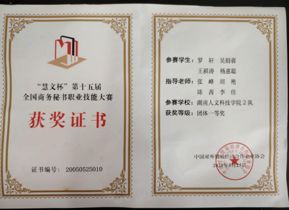 对全国第十五届商务秘书职业技能大赛,我院高度重视,成立了以秘书学专业负责人张峰老师为首的赛事指导专班。备赛期间,张峰、刘红梅、李佳等老师多次组织选手开展专项训练。从秘书实务操作到情境模拟展示,从理论知识巩固到应用指导,他们都倾囊相授、细心指导。文学院在物资保障、后勤服务等方面也给予了全力支持。