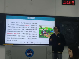 正式评课活动展开前,四个磨课小组分别组织组内成员从七年级上册语文教科书中选取片段教学内容,进行深入探讨,设计并制作ppt,撰写逐字稿。