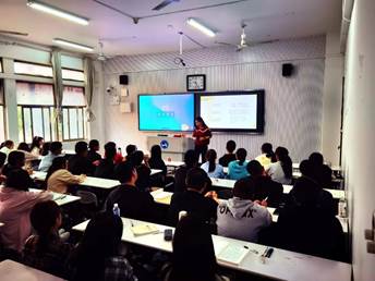 204教室由李亚珍老师上《现代汉语(一)》课,汉文2023级2班应到48人,实到48人。李老师的课一直很受同学们欢迎,课堂纪律良好,师生互动流畅。