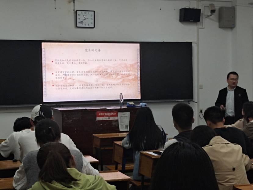 为端正入党动机、促进入党积极分子从思想、行动上争取入党,文学院举办了第30期入党积极分子培训班,2021年11月4日毛永宁副书记在致远楼217教室为大家带来了第五课《党员的权利和义务》。