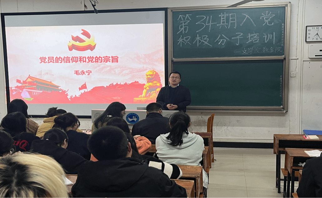 为进一步落实学习革命文化和红色精神,增强入党积极分子的历史担当和历史使命感,坚定理想信念。数金学院与文学院于2023年11月29日在学而楼209教室联合举办了第34期入党积极分子培训班第五课,由文学院毛永宁书记带领大家深入学习了《理想信念教育》。