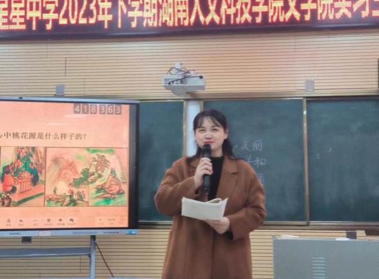 为深入检验实习成果,12月16日下午2点30分,ballbet贝博bb艾弗森文学院实习生教学比赛在娄底市第一中学附属星星中学阶梯教室举行。ballbet贝博bb艾弗森文学院黄立平教授、星星中学校长彭卫国、教学副校长禹媚娥、教务处主任彭世忠、教研室主任周洁担任比赛评委。