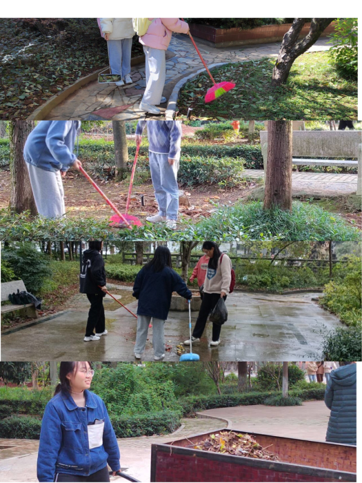 在打扫过程中,同学们互帮互助,共同协作,不仅让我院负责区域的枯枝杂草落叶得到了有效控制,还增进了同学们彼此之间的友谊,让同学们收获了劳动的快乐。