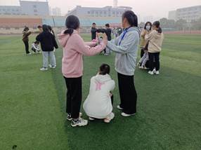 天气转晴,第二天的素拓在田径场拉开序幕。首先是一公里的跑步热身运动,尽管清晨气温较低,但大家都还是坚持跑完了一公里。紧接着素拓师带领着大家进行了“大树和松鼠”,“穿越A4纸”,“长江黄河”等素拓项目。成员们没有了第一次素拓的拘谨,更加认真的投入进了素拓活动之中。
