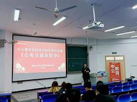 为帮助我院学生对各级公务员考试有更好的了解,学习如何合理、科学备考公务员,我院邀请中公教育于12月14日下午在致远楼219教室开展“公务员就业指导”讲座。我院部分大三学生参加讲座。