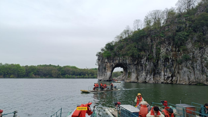 桃花江畔玉屏翠,樱花园里佳人多。桂林阳朔采风最后一站,师生游览南溪公园。到达南溪公园,但见山映水中,水含山色,给人以画里藏人、人游画中之感。