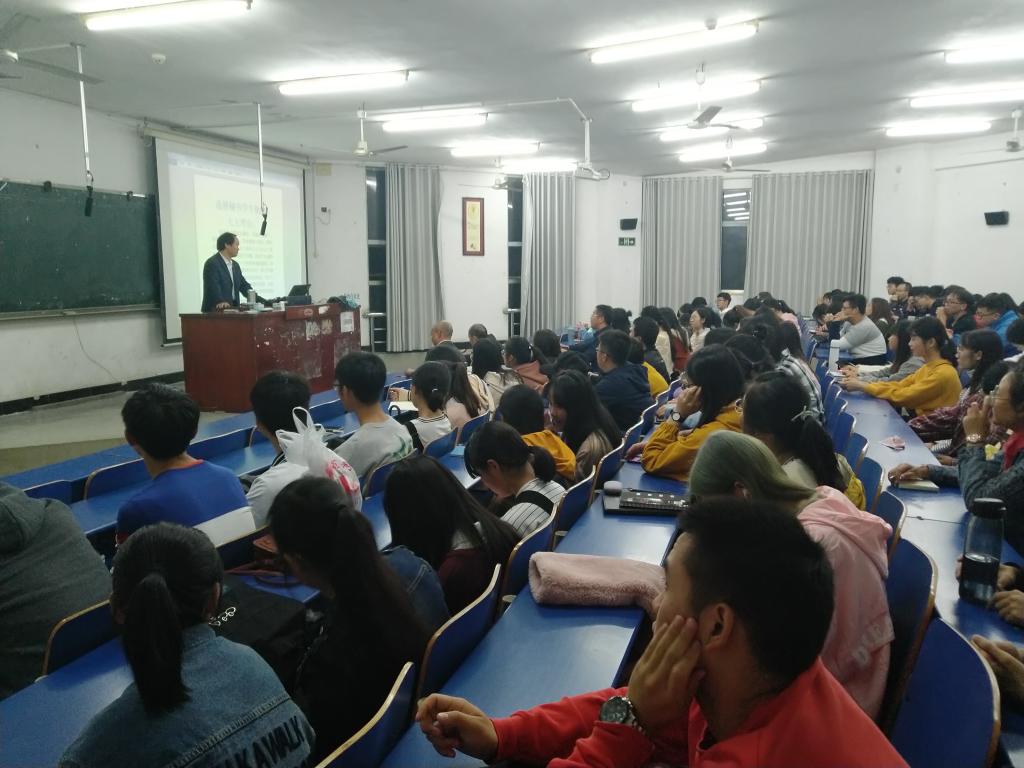 2018年10月16日晚,致远楼220教室座无虚席。文学院秘书学专业17、18级学生130多人齐聚一堂,聆听了文学院院长黄立平教授的主题讲座。