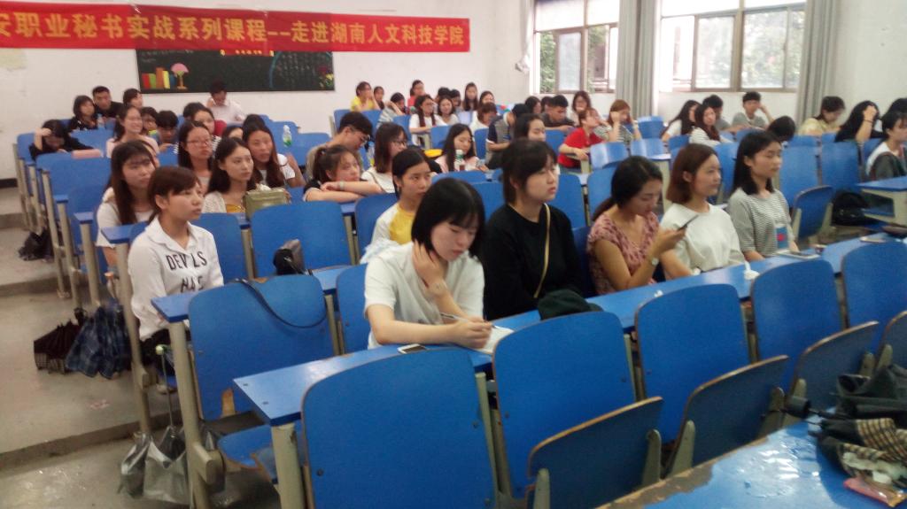 办会是秘书工作的重要内容,如何办会,教科书上讲得头头是道,但大家并没有机会动手去做,毕竟有些茫然。为了切实培养秘书学专业学生的文秘技能,促使同学们将所学的理论知识与实践相结合,能适应秘书岗位的需要,此次校企合作教育,文学院聘请了深圳国泰安公司市场总监彭斌先生来对秘书学专业学生进行会务管理课程实训。