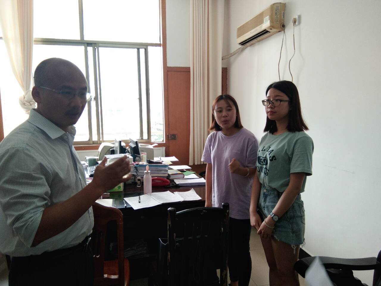 离开禹主任办公室,区委深改办阳胜高副主任召集了在区委办见习的许慧莹、卢莹莹、周亚丹、谢仕瑶4位同学与院领导见面。黄立平院长详细询问了她们在区委办开展见习的情况,勉励她们好好学习,掌握秘书技能。