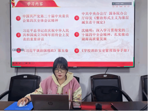 接着,彭雅文同志继续担任主讲人进行政治学习,结合规定出台背景与具体内容,逐一向大家解读中共中央办公厅、国务院办公厅印发的《整治形式主义为基层减负若干规定》中“七个方面”减负措施。同时主讲人彭雅文还谈到《整治形式主义为基层减负若干规定》的出台,是党中央为基层松绑、推动基层集中精力服务群众的重要举措。通过学习,学生党员们深入领会中央为基层减负的决策部署,切实增强对政策的理解与认同。