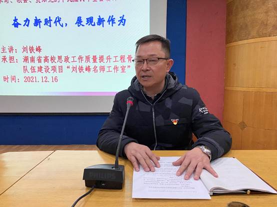 为宣讲十九届六中全会精神,进一步加强二级学院的思想政治教育,12月16日,刘铁峰副校长在养根楼报告厅上了《奋进新时代,展现新作为》的党课。文学院、音乐与舞蹈学院的全体师生党员聆听了党课,文学院党总支书记尹钟宏和音乐与舞蹈学院党总支书记刘纲华共同主持。
