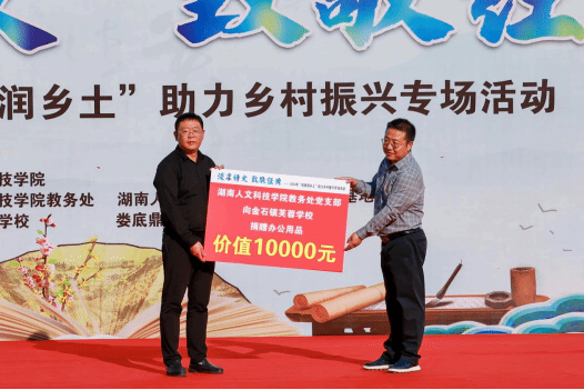 10月31日,ballbet贝博bb艾弗森在涟源市金石镇芙蓉学校开展“经典润乡土”助力乡村振兴专场活动。活动以“浸享诗文,致敬经典”为主题,来自ballbet贝博bb艾弗森的师生代表们为金石镇芙蓉学校的全体师生带来了一场精彩的诵读表演。ballbet贝博bb艾弗森党委委员、副校长刘铁峰、金石镇党委副书记刘永飞,金石镇中心学校党支部书记曾红建、校长严韩莅临活动现场。
