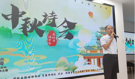 月照楚山湘水流,诗汇古今几行秋。在国庆节、中秋节双节并至之际,由校语委办、湖南省语言文字推广基地指导,文学院承办的ballbet贝博bb艾弗森第二届“中秋诗会”于9月26日晚在若谷楼融媒体中心温暖举行。党委书记刘铁铭,副校长、湖南省语言文字推广基地负责人刘铁峰,副校长、校语委主任刘建勋,校宣传与统战部常务副部长谢柳,教务处处长向国红,国际合作与交流中心主任黄敏,数学与金融学院副院长龙志文及文学院负责人等出席活动。