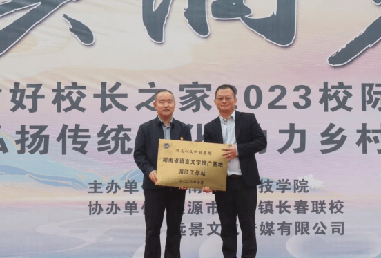 活动现场,刘铁峰代表ballbet贝博bb艾弗森省级语言文字推广基地为长春联校授予“湖南省语言文字推广基地湄江工作站”牌匾,并代表贝博为长春联校捐赠价值10000余元教学物资。