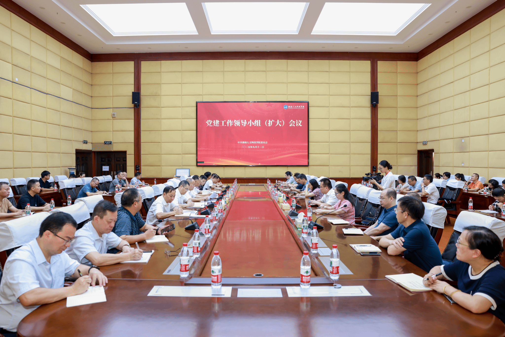 9月12日上午,学校党建工作领导小组(扩大)会议在图书馆第一报告厅召开。全体在家校领导出席,校党委副书记朱强主持会议并作总结讲话。
