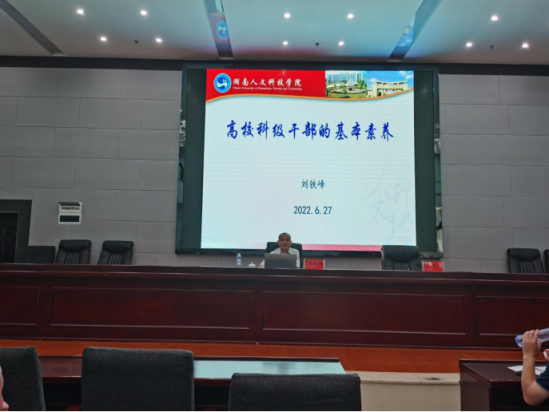 在处、科级干部集中培训中,校党委书记刘和云有针对性地指导干部们要正确认识校情、正确认识自己,正确处理好管理与服务、全局与局部、对外与对内等九大关系,争做一个领导信任师生满意的干部;党委副书记、校长刘铁铭以“喜迎二十大,奋进新征程——凝聚共识,推进学校高质量发展”为题,带领大家认清全省同类院校激烈的竞争形势及学校的差距和短板,号召干部们解放思想、担当作为,以改革求变来破解学校发展难题,推进学校高质量发展;党委副书记李军林主讲“百年党史的主题与主线”,在“七一”建党节当天带领大家重温百年党史,汲取砥砺奋进的智慧力量,激励干部干事创业担当作为;党委委员、纪委书记凌艳平以“扬清风正气,创清廉人文”为主题,倡导大家弘扬清廉的传统美德和党的优良作风,自觉遵守《中国共产党廉洁自律准则》,以清风正气涵养清明政风、清新学风、清正教风、清净校风的清廉校园。