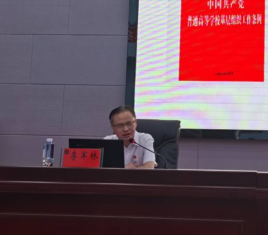 2021年4月16日,中共中央发布了修订后的《中国共产党普通高等学校基层组织工作条例》,对高校教育工作以及高校基层党建工作提出了新要求。6月21日下午,机关党委为机关120余名党员组织了一堂党课,党委副书记李军林以学习贯彻《中国共产党普通高等学校基层组织工作条例》为题,做了专题辅导。